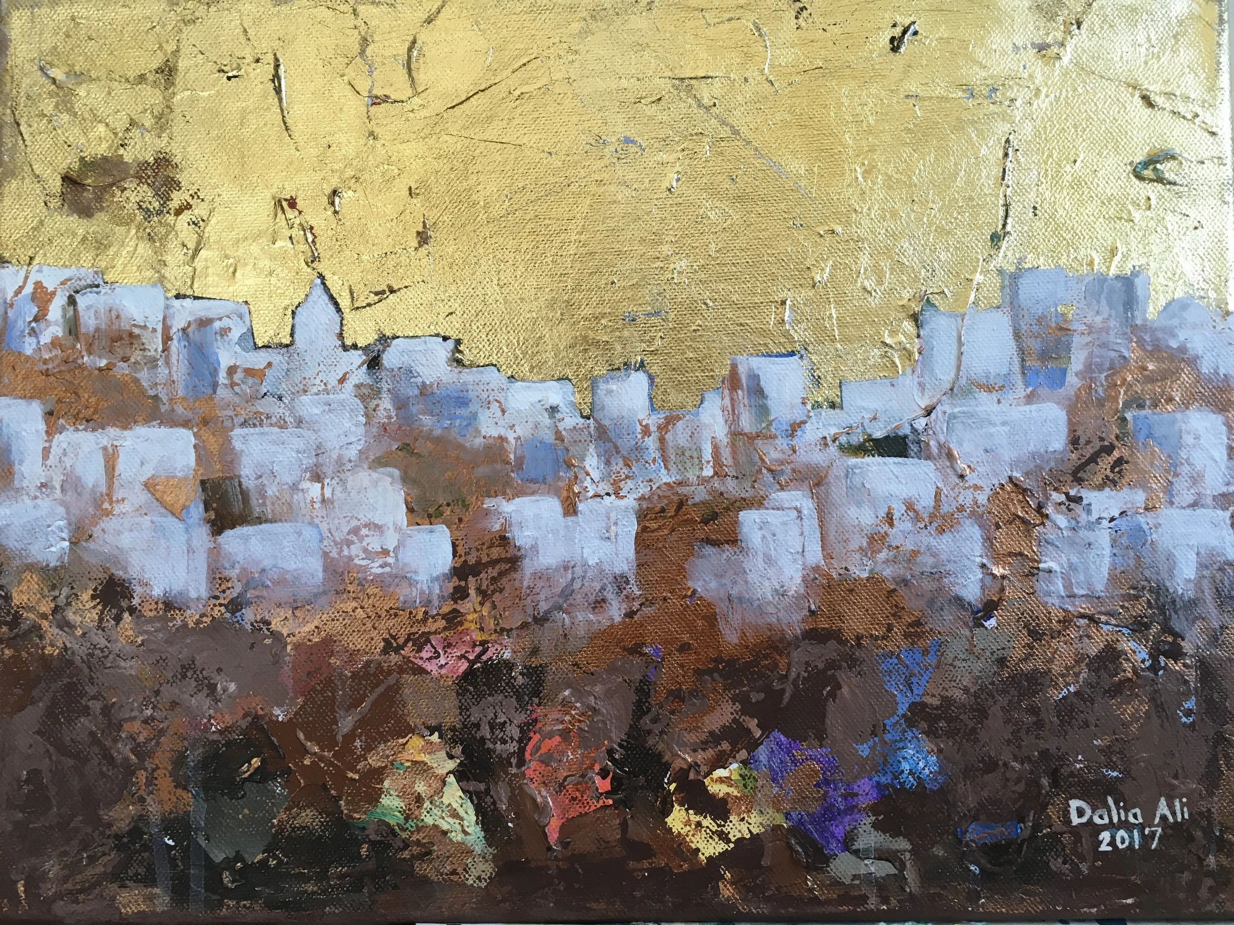 Amman's personality shines through its hillside houses, which deeply inspire my artwork. The built form becomes the most important element in my work, as a witness to the history of its inhabitants and their adaptations over time. The hilly landscape creates visually stimulating patterns with terraced houses, stairways, gardens, and trees, offering exciting spatial experiences. The sandy color palette of the built forms unifies the scenery making it a perfect canvas to reflect the changing light throughout the day and across the seasons. In this collection, I express this captivating image through various artistic approaches, from more detailed representations to more abstract forms, using different media, textures, and colors to explore endless possibilities and convey the beauty of Amman's architecture.